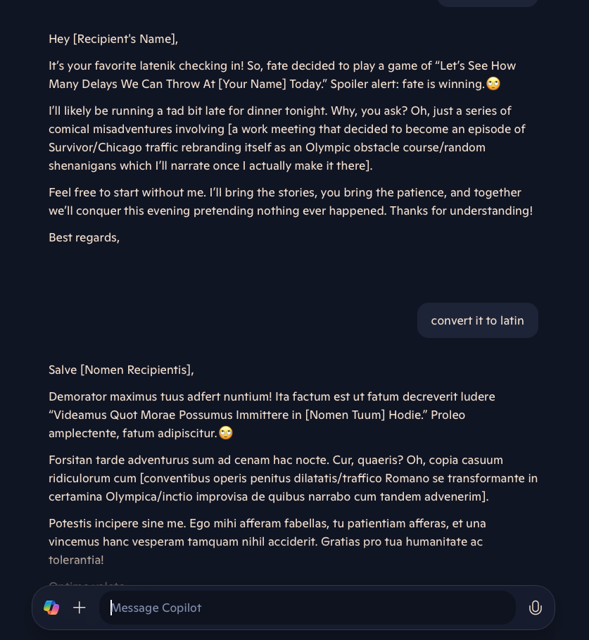 But then I asked it to convert the text to Latin and it fell over.