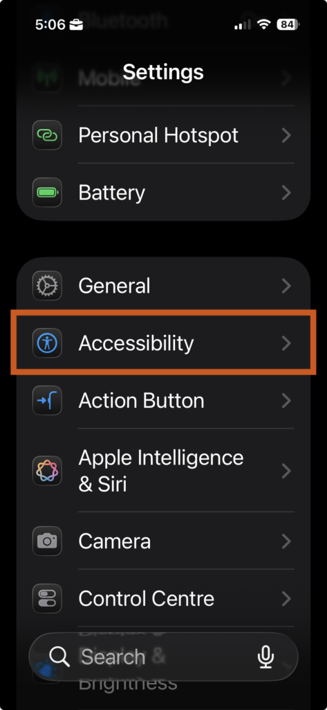 Open Settings > Accessibility.